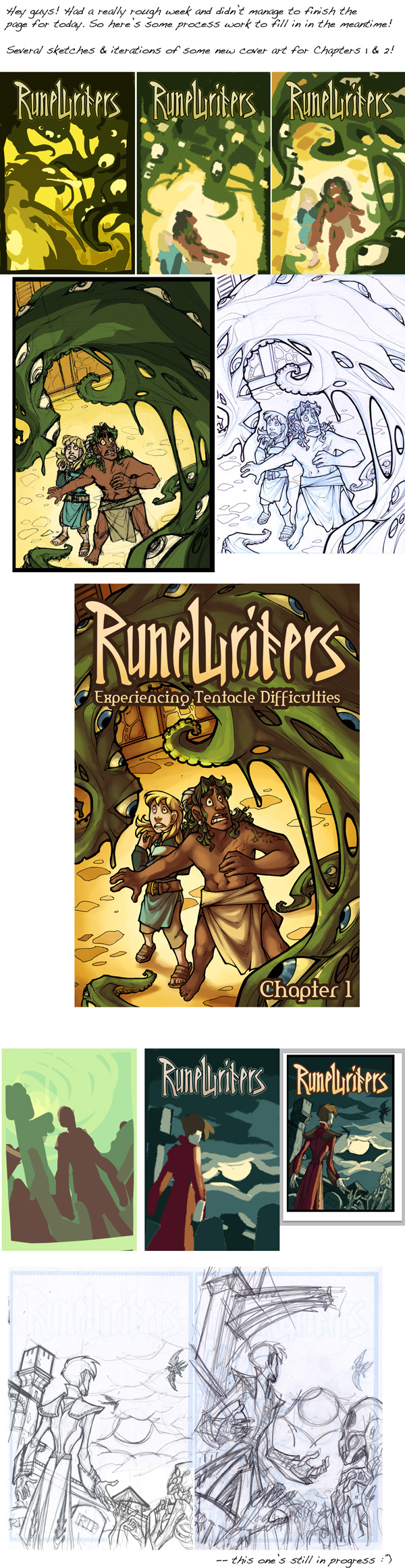 I'm reworking the covers for the printed versions of the RW chapters to be more EXCITING, so here's some of the process work that I thought would be cool to see! If all goes well and the Lord is willing I'll have a proper page for you next week, though. :")
