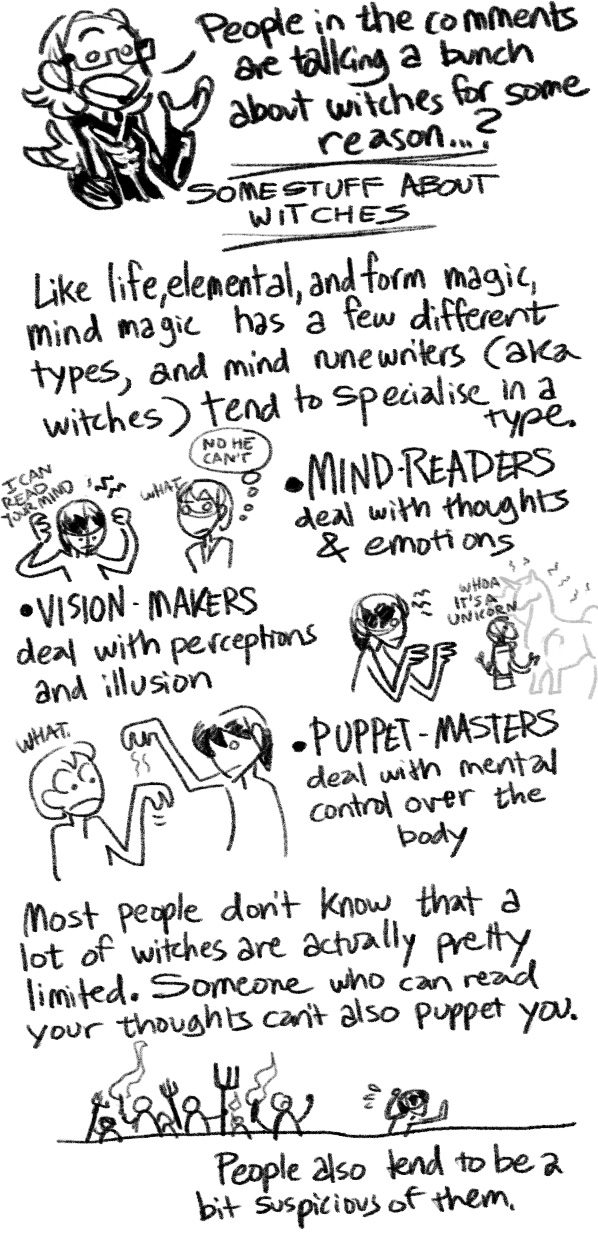 A bunch of people were talking about witches in the comments last week so I dispense a bit of extra witch info in the extra doodle you can see if you Vote for Runewriters!
