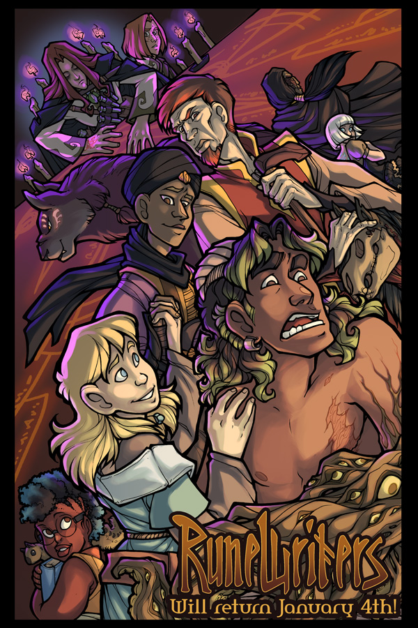 HERE'S THE DEAL: I've got a good buffer going now and working on pages has been going pretty well and I really think it's time to move forward, so let's take the jump! Lord willing, RUNEWRITERS UPDATES RESUME THIS JANUARY!