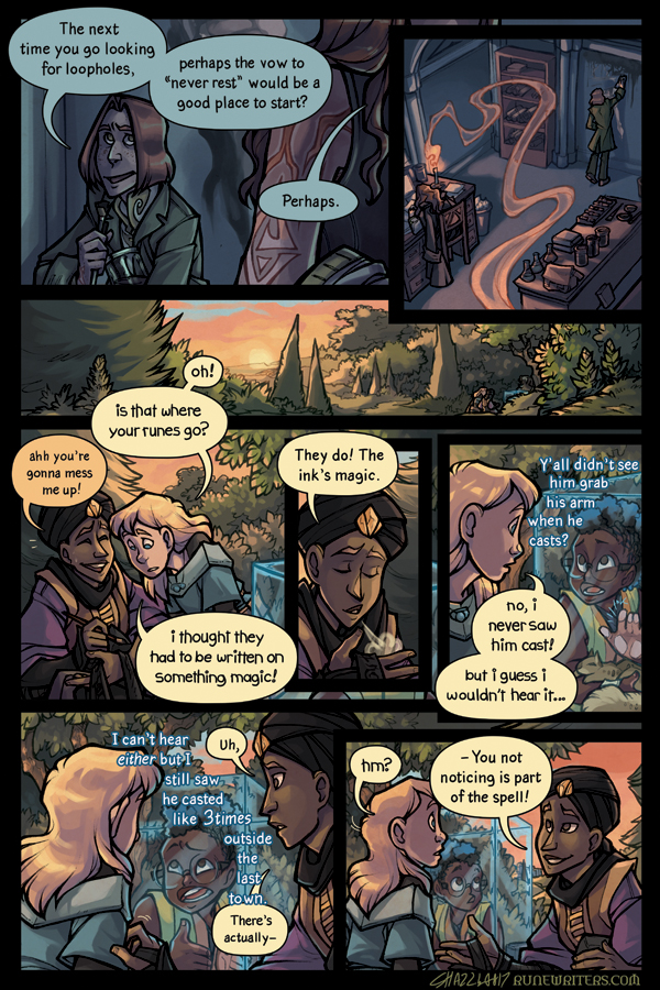 (Also, a small note regarding the last page -- a few folks in the Discord weren't sure, so I'll clarify here too that yeah, Quentin's wearing a binder! He's trans! I wanted to not make it a big reveal or anything and aPPARENTLY IT WAS SO LOWKEY THAT IT WASNT EVEN NOTICEABLE so I thought it might be nice to confirm. xD )